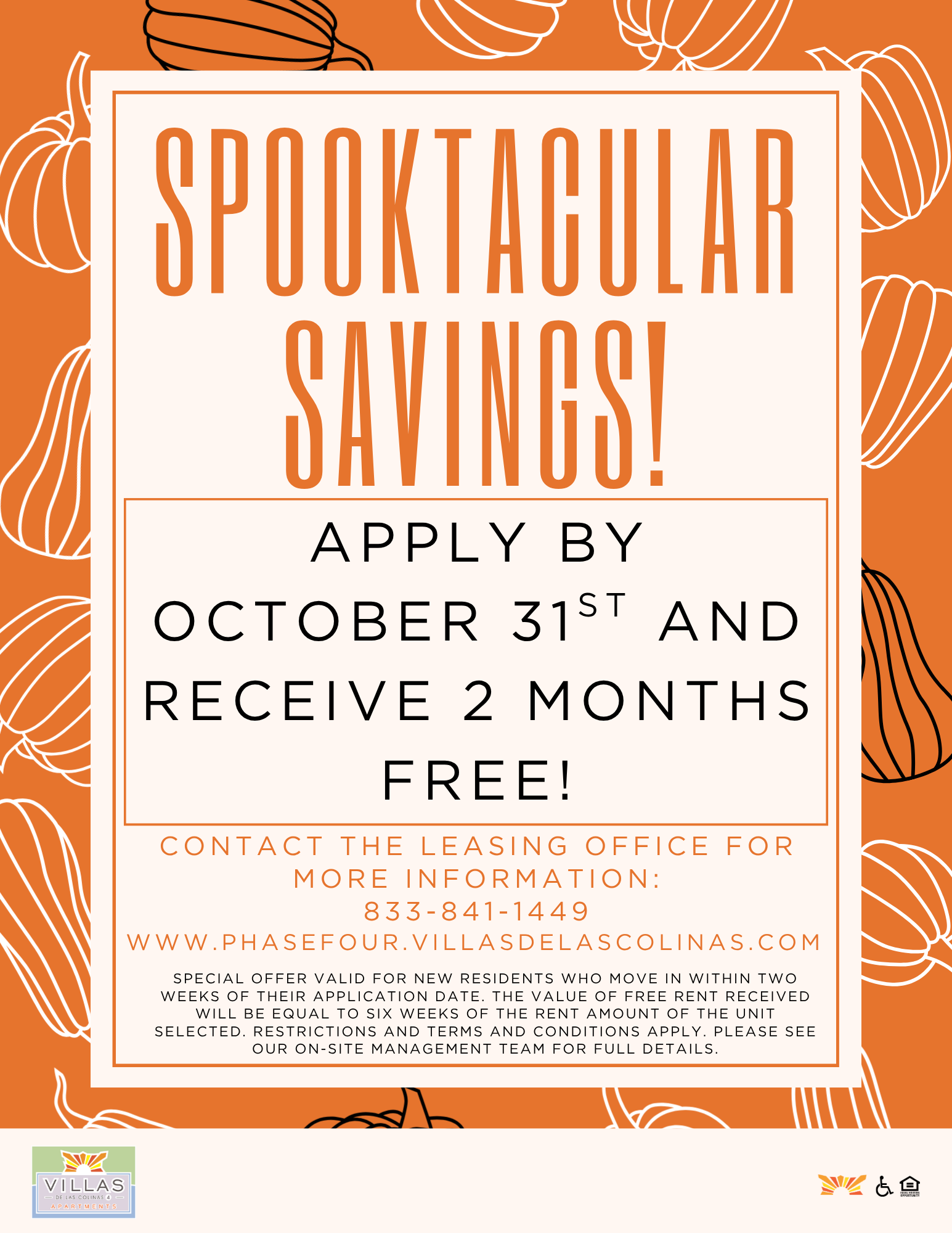 Apply by October 31st and receive 2 months free! Contact the Leasing Office for more information!⤵️ ¡Solicita antes del 31 de octubre y recibe 2 meses gratis! ¡Contacta con la Oficina de Arrendamiento para más información!⤵️